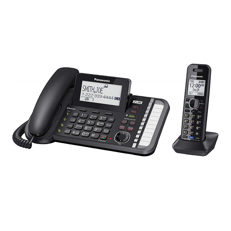 تلفن بیسیم Panasonic KX-TG9581 از یک تلفن رومیزی و یک تلفن بیسیم تشکیل شده و شما می‌توانید به صورت هم‌زمان، دو خط تلفن را به این تلفن وصل کنید و روی هر دو خط، از منشی تلفنی جداگانه، برخوردار شوید.
